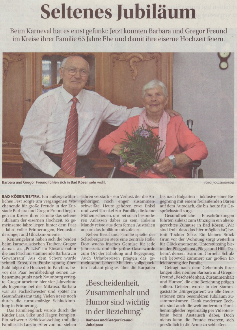 Am 18.10.2025 feierten unsere langjährigen Chormitglieder Barbara und Gregor Freund ihre Eiserne Hochzeit.